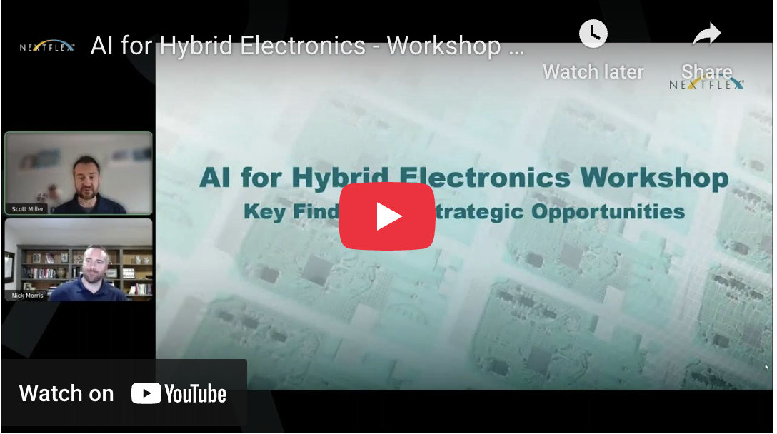At the recent NextFlex AI for Hybrid Electronics Workshop in Boston, leaders from across the industrial base came together to explore how artificial intelligence (AI) and machine learning (ML) are transforming design, materials, process control, and system intelligence in hybrid electronics and how they will continue to revolutionize the value chain.