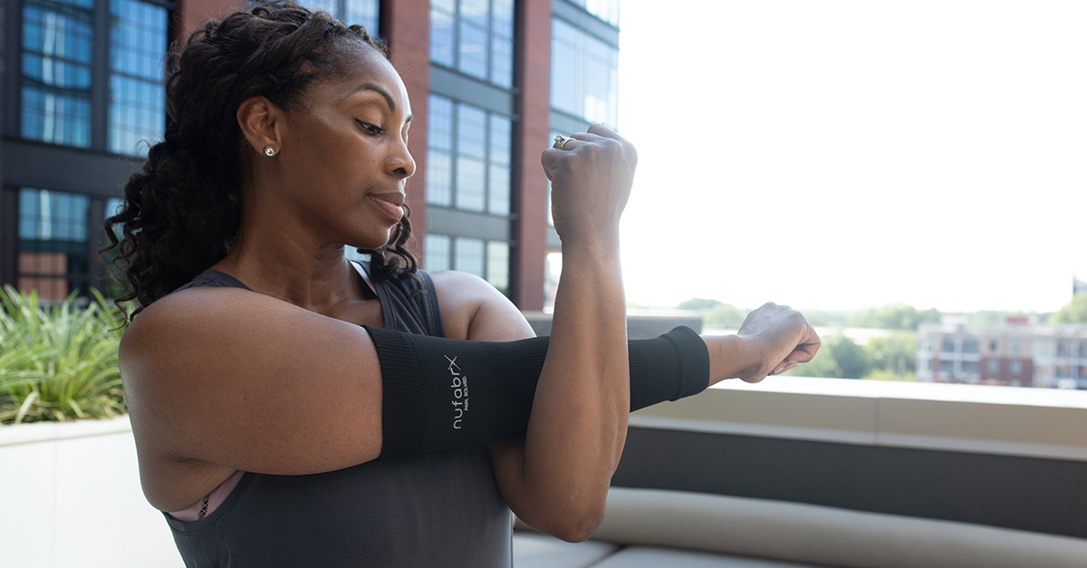 Nufabrx is a proprietary biomaterial platform that embeds active ingredients into fabrics at the yarn level. The infused fabrics respond to the body's temperature and moisture, allowing wearers to benefit from a long-lasting dermal release of Capsaicin medication and copper into the skin. Vitamins, supplements, and medicines can be infused into the platform to help relieve pain from arthritis and tendonitis.
